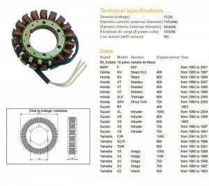 Produkt dostępny! 6 szt. DZE UZWOJENIE ALTERNATORA STATOR BMW F 650 93-01; VT 500/600 83-07; XL 650V TRANSALP 00-06; XRV 750 AFRICA TWIN 90-00; SUZUKI VS 569,50 PLN